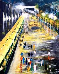 Lahore Station Acrylic Painting With Palette Knives Train Drawing Acrylic Painting Painting