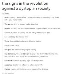 The Signs In The Revolution Against A Dystopian Society Zodiac Signs Zodiac Signs Cancer Zodiac Capricorn